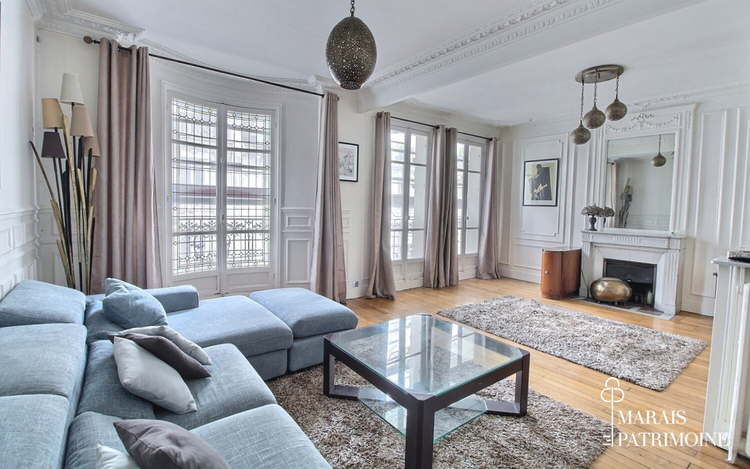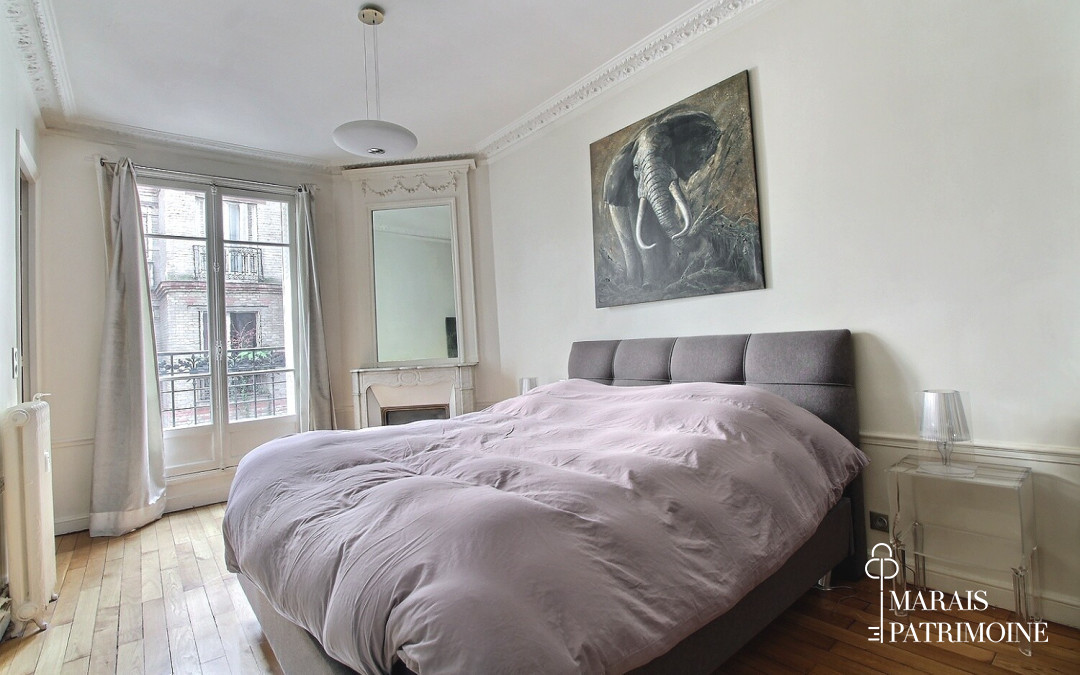 Paris XI - Quartier Oberkampf / République. Appartement Familial au 2e étage d'un immeuble haussmannien d'une surface de 79m² Carrez, lumineux, spacieux, idéal pour une famille et offrant un balcon filant . Il se compose d'un double séjour, d'une cuisine indépendante, de deux chambres dont une suite parentale avec salle de douche, d'une salle de bains et 2 WC. Une cave complète ce bien.