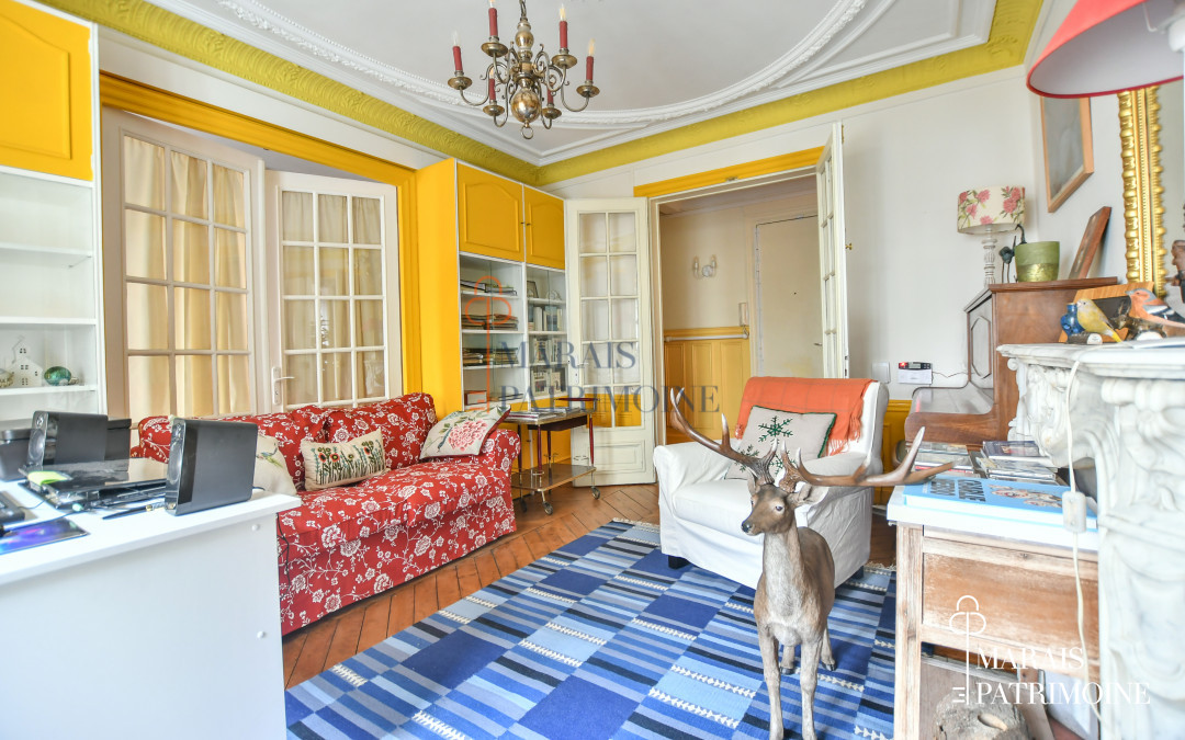 EXLUSIVITE - Paris XVII- Pont Cardinet / Jouffroy D'Abbans. Appartement familial au 1er étage d'un immeuble haussmannien, lumineux, spacieux et charmant. Cheminée, moulures et parquet en pointe de Hongrie sont présent. Il se compose d'un triple séjour, 3 chambres, une cuisine séparée, 2 salle d'eau et un toilette séparé. Deux caves et une chambre de service (5,1m2) complètent le bien.