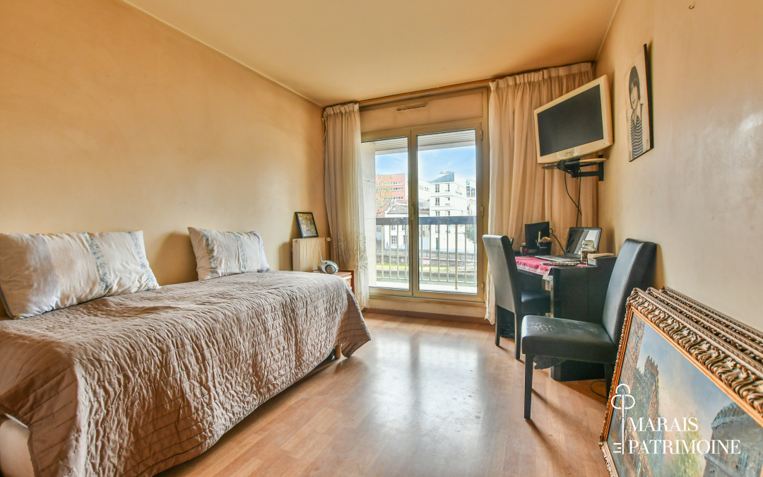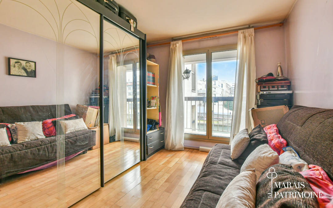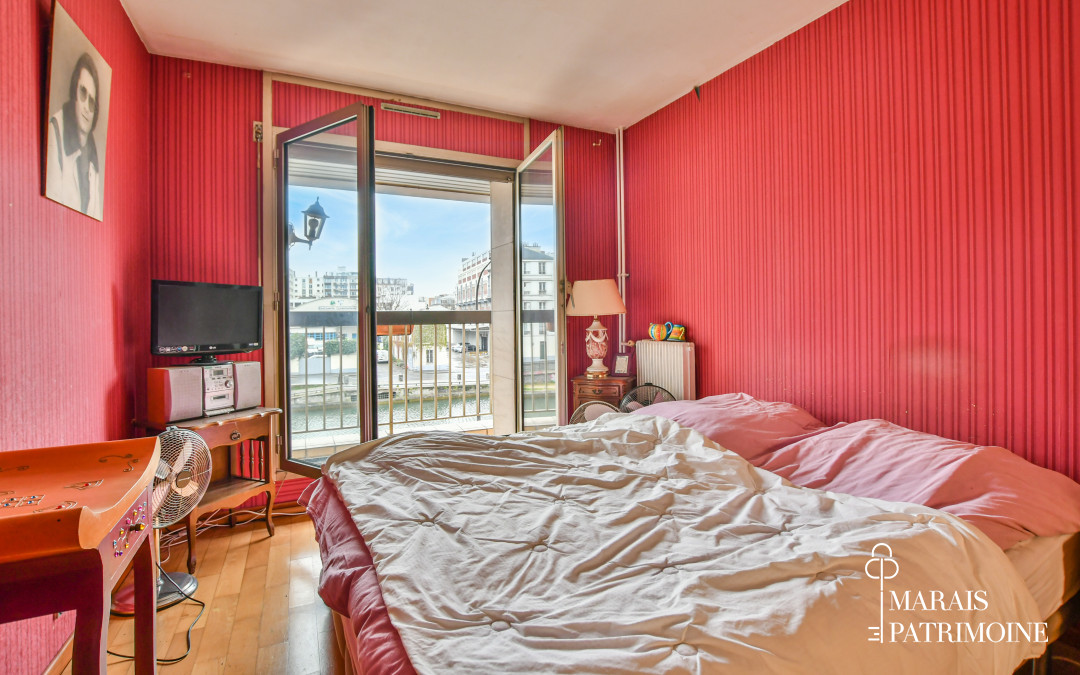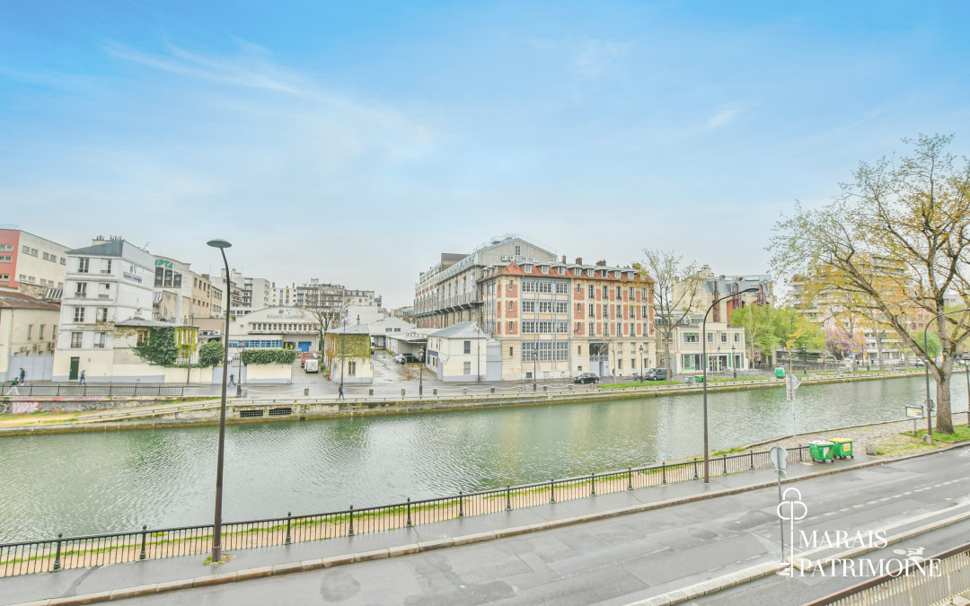 EXCLUSIVITE - Paris X - Canal Saint Martin. Appartement familial au 1er étage d'un immeuble, d'une surface de 103m2 lumineux et spacieux donnant directement sur le Canal par un balcon filant et une petite terrasse (Exposition SE). Il se compose d'un double séjour, une cuisine séparée, 3 chambres, 2 salles de bain et 2 WC. Une cave complète le bien. Possibilité de parking en sus à l'achat.